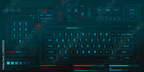 Wall mural a set of hud keyboards elements for a futuristic interface.