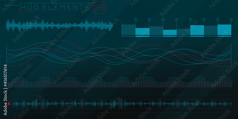 The watermark will not be included on Wall mural.: A set of hud waves elements for a futuristic interface -