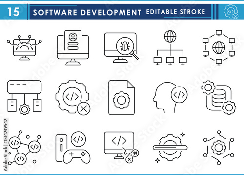 The watermark will not be included on Wall mural.: A set of line icons related to software development - software, develop, program, install, develop, f
