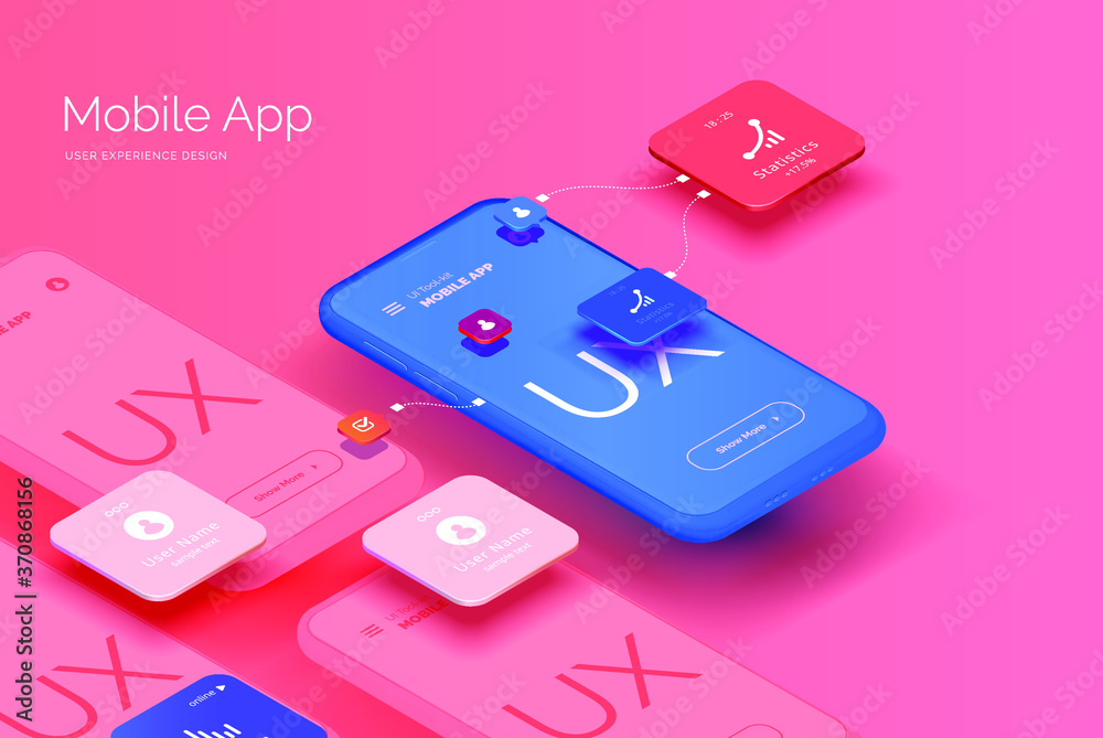 Wall mural a set of mockups for smartphones with a user interface for a mobile application. mobile application