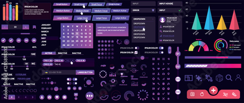 Wall mural a set of ui components for mobile apps and websites. includes buttons, panels, menus, sliders, and c