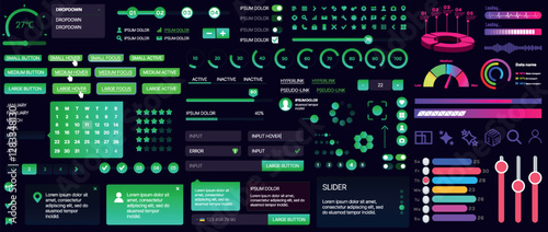 Wall mural a set of ui components for mobile apps and websites. includes buttons, panels, menus, sliders, and c