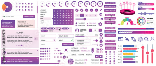 Wall mural a set of ui components for mobile apps and websites. includes buttons, panels, menus, sliders, and c