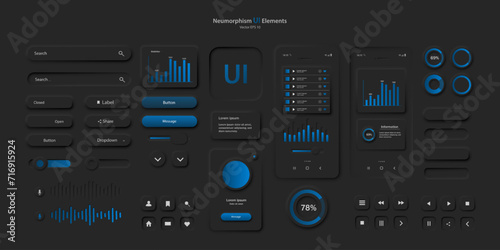 Wall mural a set of user interface elements for a mobile application in a dark style. user interface icons for