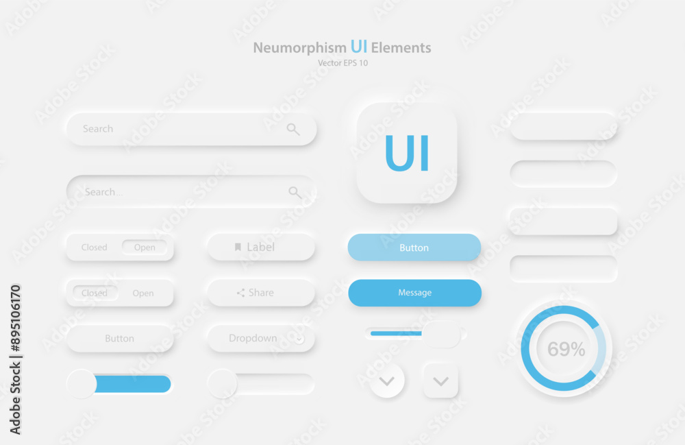 Wall mural a set of user interface elements for a mobile application in white and blue. buttons for mobile devi - Wall murals Wall mural a set of user interface elements for a mobile application in white and blue. buttons for mobile devi - Wall murals