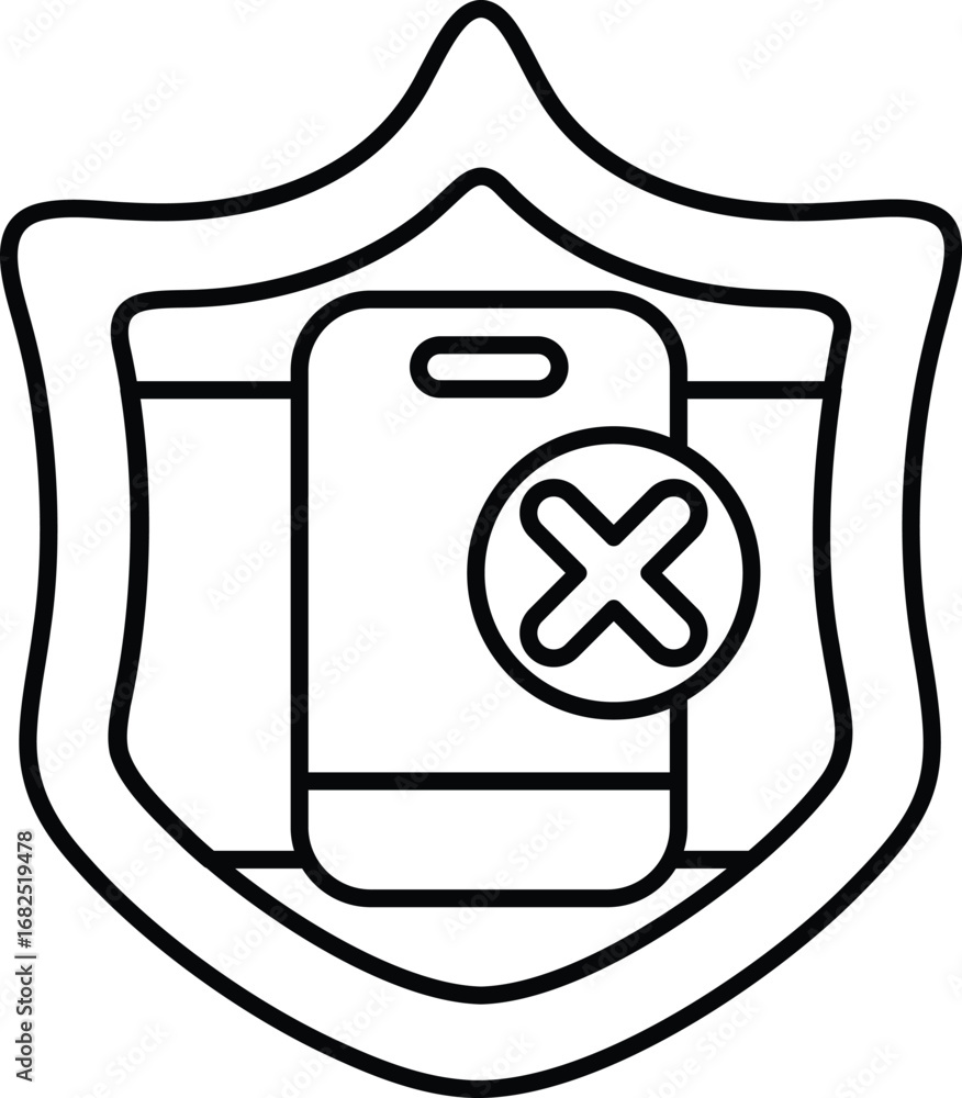 Wall mural a shield with a phone on it and an x on it - Wall murals Wall mural a shield with a phone on it and an x on it - Wall murals