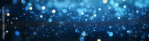 Wall mural a shimmering blue bokeh background with various sizes of glowing lights, creating a festive and magi
