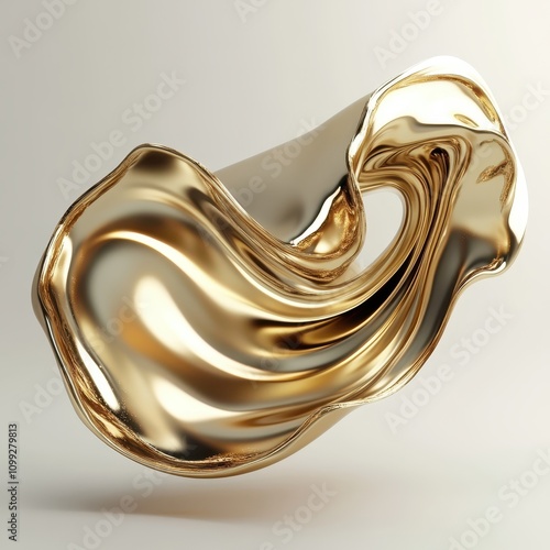 The watermark will not be included on Wall mural.: A shiny, flowing golden abstract sculpture with smooth curves and a dynamic form -