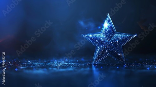 Wall mural : A shiny blue star sitting on a glittery surface -