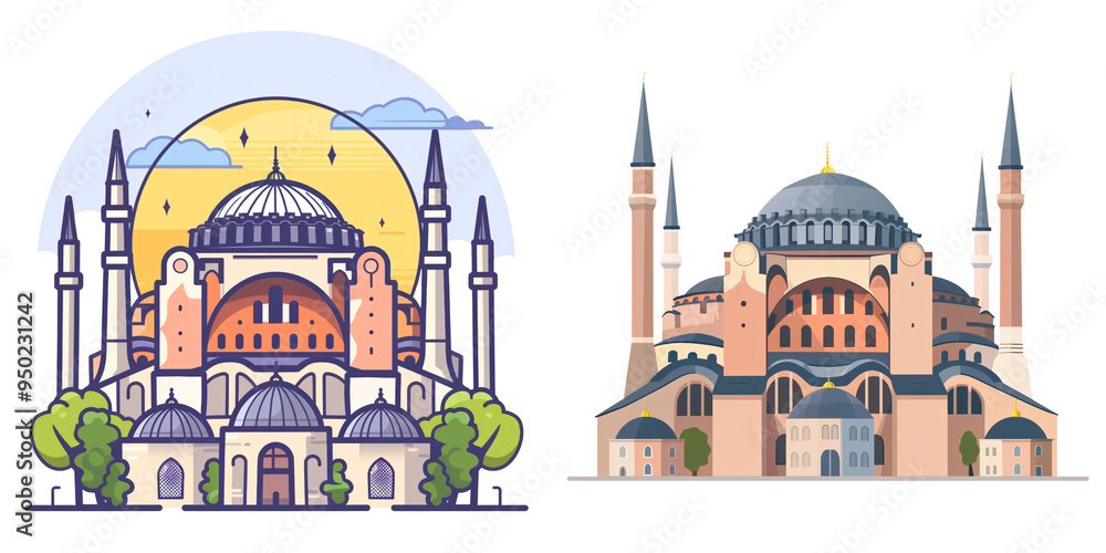 Wall mural a simple vector icon illustration depicting the group of hagia sophia for a website isolated white b - Wall murals Wall mural a simple vector icon illustration depicting the group of hagia sophia for a website isolated white b - Wall murals