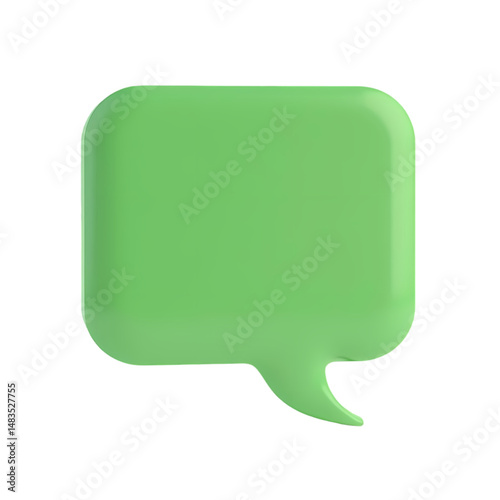 Wall mural : A single green speech bubble with rounded corners in a 3d render isolated on transparent background
