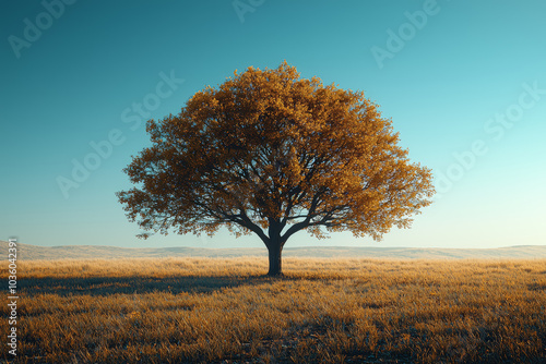 Wall mural a single tree standing in a vast open field, representing isolation and growth. concept of minimalis