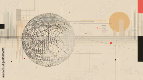 Wall mural a sketch illustration of a detailed globe with network lines and nodes, set against a white backgrou - Wall murals Wall mural a sketch illustration of a detailed globe with network lines and nodes, set against a white backgrou - Wall murals