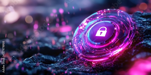 Wall mural a sleek, digital shield, its surface pulsating with an ethereal glow, featured a circular lock icon,