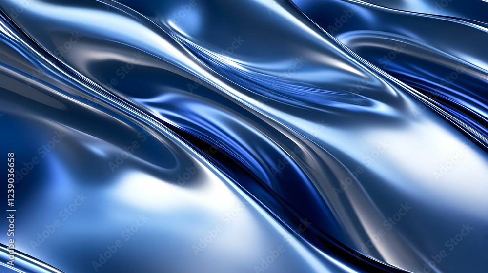Wall mural : A sleek 3d abstract wavy background with a gradient of sapphire blue and silver, highlighted by smoo