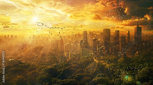 The watermark will not be included on Wall mural.: A slide background for showcasing a positive image of the modern civilization