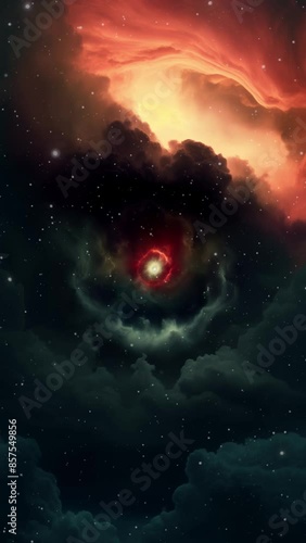 Wall mural a slow push past cosmic clouds towards a fictitious red core with energy tentacles. includes four di