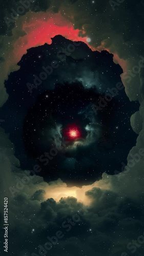Wall mural a slow push through cosmic cloud rings toward a fictitious red core of pulsing cosmic energy. includ