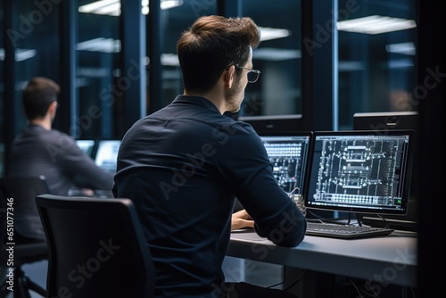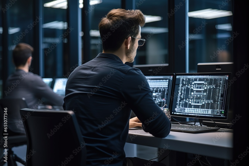 Wall mural a smart make it programmer works on a desktop computer - Wall murals Wall mural a smart make it programmer works on a desktop computer - Wall murals