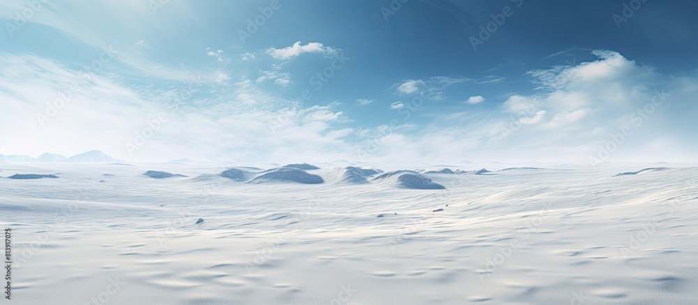 The watermark will not be included on Wall mural.: A snowy field with frozen snow creating a scenic copy space image
