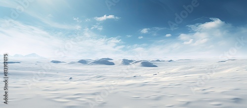 Wall mural a snowy field with frozen snow creating a scenic copy space image