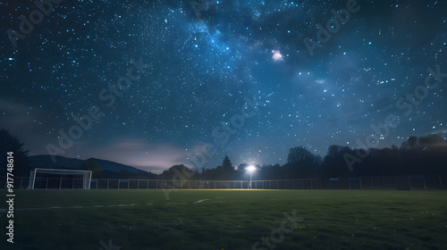 The watermark will not be included on Wall mural.: A soccer field with two goal posts and a large