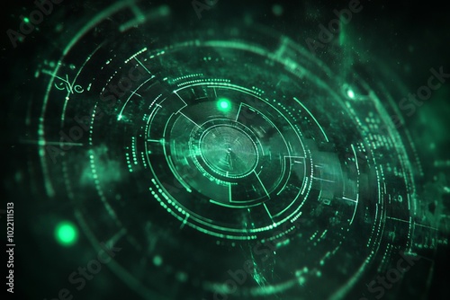 Wall mural a soft, green radar signal screen with rotating circles and dots