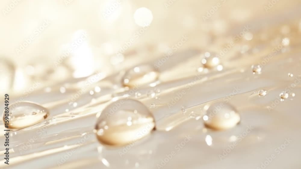 The watermark will not be included on Wall mural.: A soft, minimalistic background in warm cream and white tones - transparent water droplets gently dri