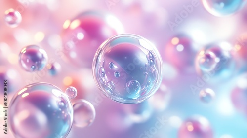 The watermark will not be included on Wall mural.: A soft and ethereal abstract background featuring iridescent bubbles floating in a dreamy pink and b