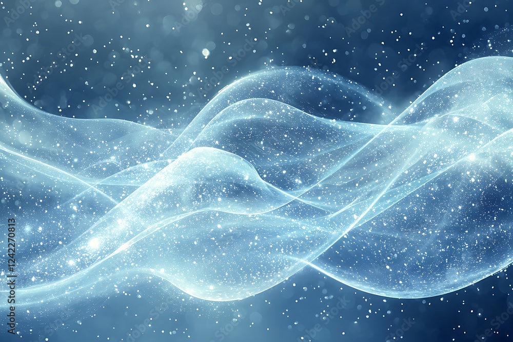 Wall mural : A soft blue wave background, gently curving and sparkling with light, creating a peaceful and dynami