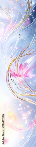 Wall mural a soft flowing abstract of pink and gold lines and shapes on white background.