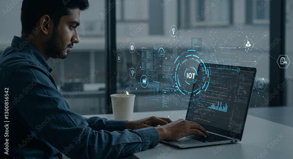 Wall mural a software developer analyzing cybersecurity data, programming iot solutions, and interacting with a - Wall murals Wall mural a software developer analyzing cybersecurity data, programming iot solutions, and interacting with a - Wall murals