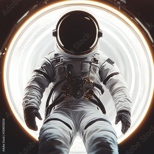 Wall mural a solitary astronaut floats in a cosmic portal, illuminated by a circular light, creating a sense of