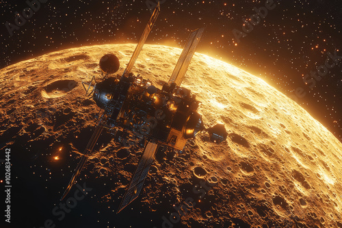 Wall mural a space probe sending back images from a distant moon, showcasing the importance of unmanned space m - Wall murals Wall mural a space probe sending back images from a distant moon, showcasing the importance of unmanned space m - Wall murals