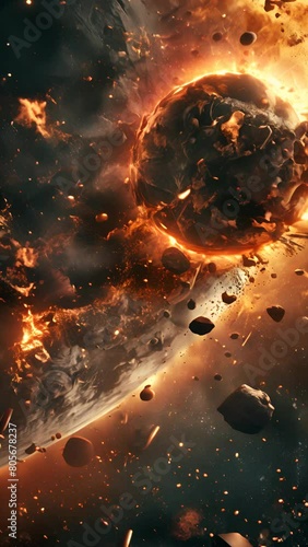 Wall mural a space scene with a large planet and a lot of debris. the debris includes a large number of rocks a