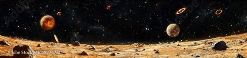 Wall mural a space scene with a large planet in the foreground and a smaller planet in the background. the back - Wall murals Wall mural a space scene with a large planet in the foreground and a smaller planet in the background. the back - Wall murals