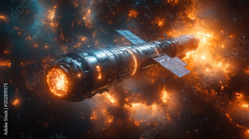 Wall mural a space ship is flying through a fiery cloud of space debris. the ship is surrounded by a bright ora - Wall murals Wall mural a space ship is flying through a fiery cloud of space debris. the ship is surrounded by a bright ora - Wall murals