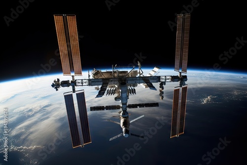 Wall mural : A space station, with the vastness of space visible in the background, created with generative ai