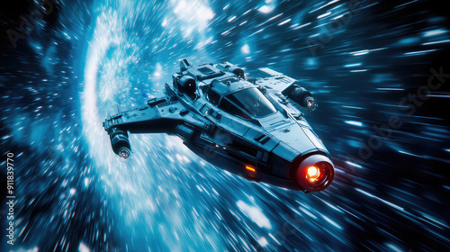 A spaceship is speeding at light speed through a holographic galactic vortex - generative aiWall mural