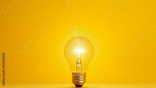 The watermark will not be included on Wall mural.: A sparking idea is conceived when a lightbulb moment occurs above a bright yellow background near an
