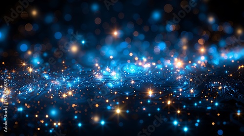 Wall mural a sparkling blue and gold abstract background with glowing lights, reminiscent of a digital circuit