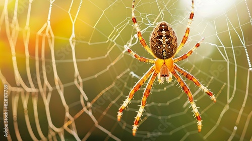 The watermark will not be included on Wall mural.: A spider is on a web and it is the center of the image macro image shot