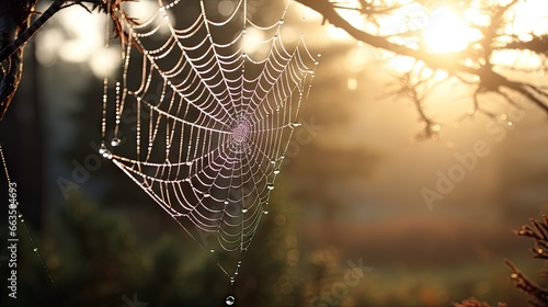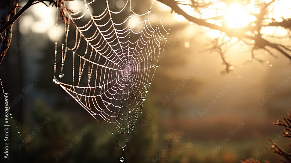 Wall mural a spider web hanging from a tree branch in the sun. generative ai - Wall murals Wall mural a spider web hanging from a tree branch in the sun. generative ai - Wall murals