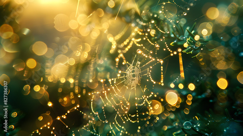 The watermark will not be included on Wall mural.: A spider web with many small dots in the background