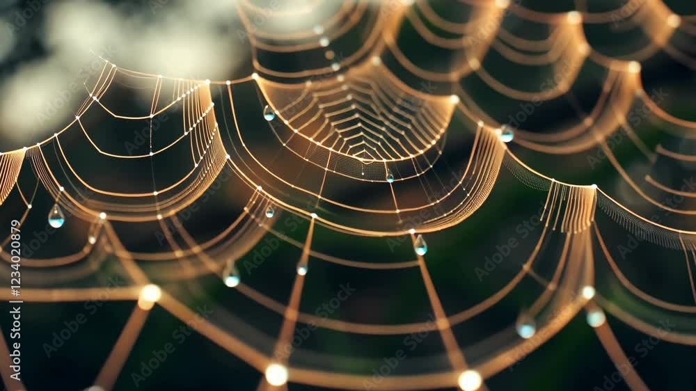 Wall mural a spider web with water droplets on it. the web is made of many strings - Wall murals Wall mural a spider web with water droplets on it. the web is made of many strings - Wall murals