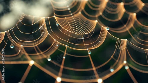 Wall mural a spider web with water droplets on it. the web is made of many strings
