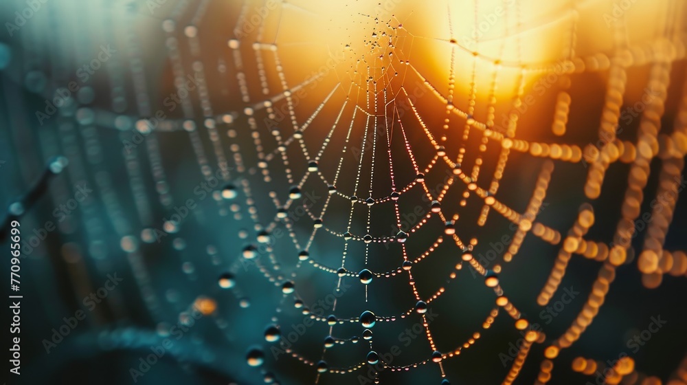Wall mural a spider web with water droplets on it. the web is very intricate and the water droplets add a sense - Wall murals Wall mural a spider web with water droplets on it. the web is very intricate and the water droplets add a sense - Wall murals