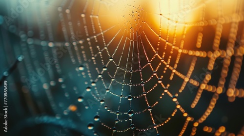 Wall mural a spider web with water droplets on it. the web is very intricate and the water droplets add a sense