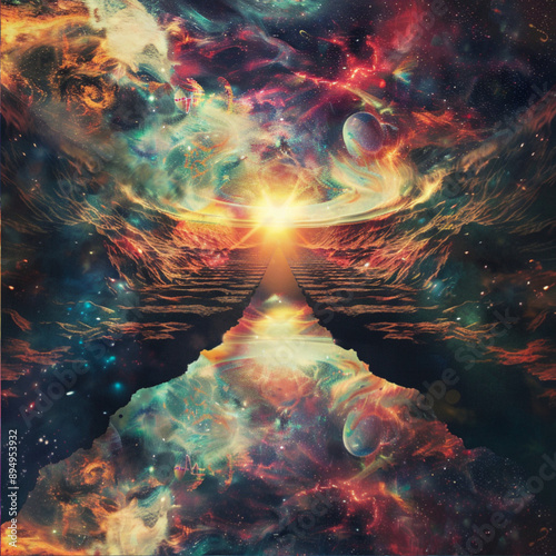 Wall mural : A spiritual space trippy background that is light enough so that black text would be visible on it