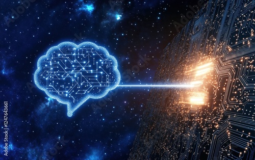 Wall mural a starry night sky with a glowing white line connecting two stars, resembling an ai circuit board a  - Wall murals Wall mural a starry night sky with a glowing white line connecting two stars, resembling an ai circuit board a - Wall murals